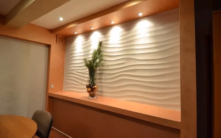 Ponúkame široký výber dizajnových prvkov, ako sú tapety, obkladové kamene a textil, ktoré spájajú interiér a exteriér do harmonického celku.