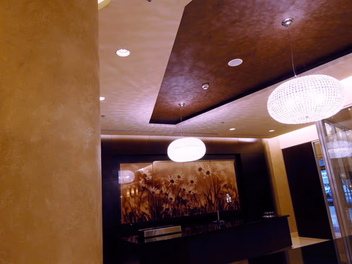 Dodávka a inštalácia sculpturálnych panelov Armourcoat Flowwave v recepcii hotela, úpravy stĺpov v recepcii hotela technikou Spatulata a Pitted v kombinácii so šablónovými technikami, dodávka a inštalácia zlatenej steny Granite Gold v priestoroch baru. Úpravy stĺpov v reštaurácii technikou Pitted a stropov technikou Perlata. Autori interiéru Arch. Richard Baláži & millieu architects, štúdio Nahálka. Okrem toho kompletná inštalácia a dodávka tapiet v priestoroch hotela (viď. referencie v časti profi tapety).