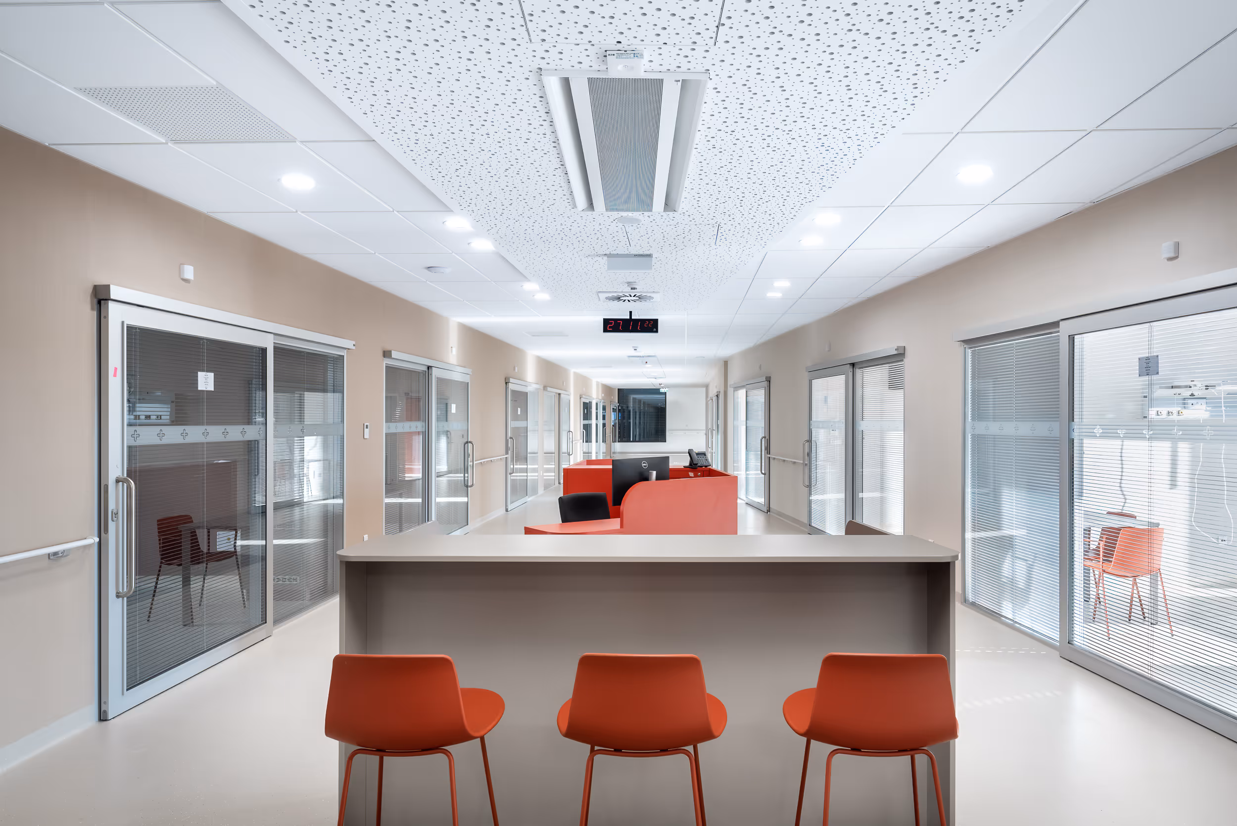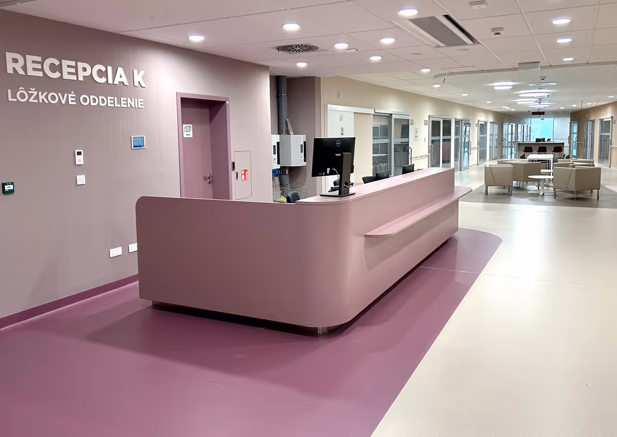 Dodávka a inštalácia viac než 10.000 m2 tapiet s vysokým hygienickým štandardom , inštalácia skotextilných tapiet s hygienickým náterom, inštalácia grafík na stenách priestorov Nemocnice.